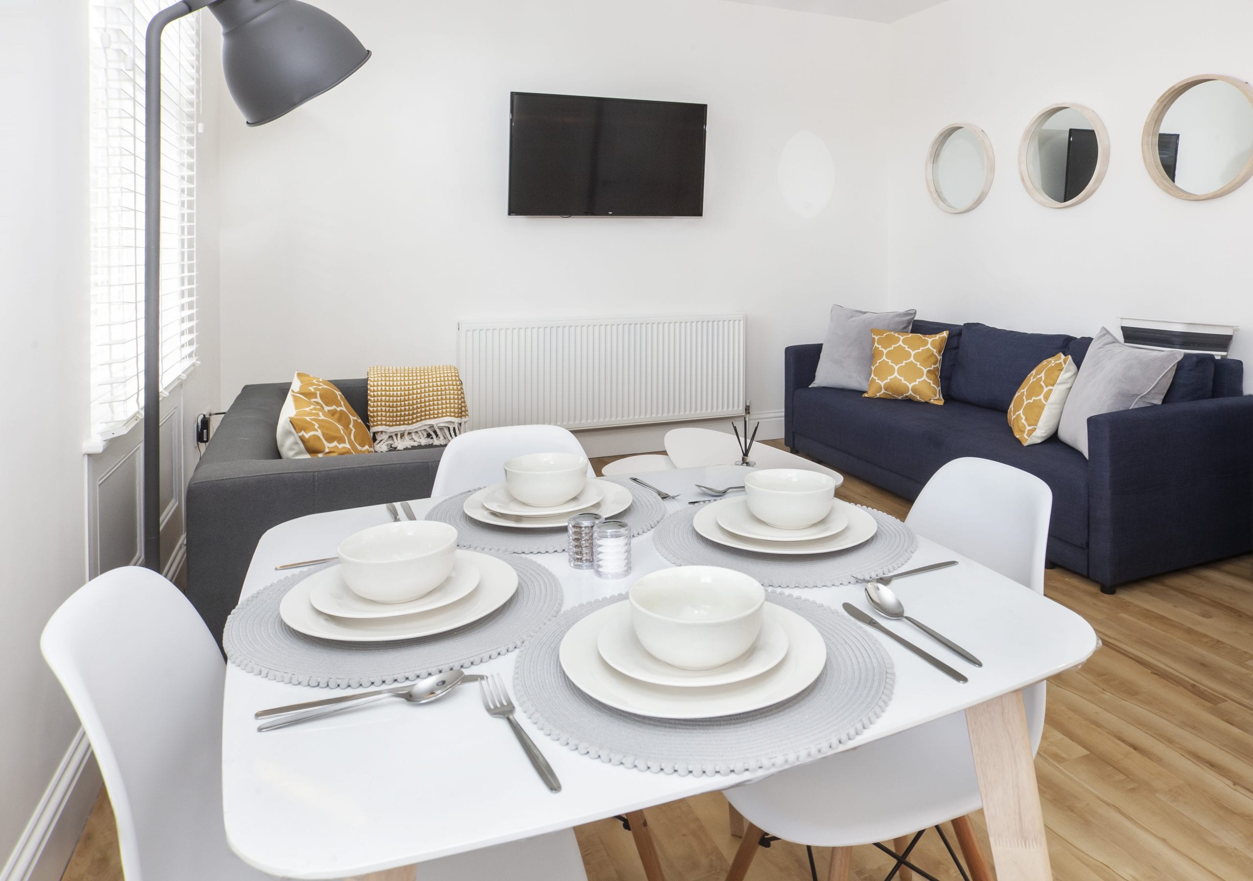 Set within a recently converted development this apartment makes for a great choice for any length of stay in York. The on street parking for the apartment sits outside the development with a parking permit provided. The dining area seats 4 for dinner . The kitchen area is fully equipped with everything you could possibly need and more. All the electrical appliances you would expect to find to make life a little bit easier are here like a dishwasher washer/dryer and microwave. The oven and hob are electric and the kitchen features some stylish wooden worktops that give it a luxury feel together with the neutral decor. The master bedroom has been stylishly furnished. The king bed and high quality linen make it the perfect place to collapse after exploring all that York has to offer! The comfortable modern living area seats 4 and has a large Tv for cosy nights in it also has a double sofa bed to accommodate 2 guests The bathroom of the property has been decorated to a great standard with stylish modern tiling and contains a large walk in shower . – 1 bedrooms – Just a short 10 minute walk into the heart of the city centre – Parking at no additional cost – Stylishly presented and brand new throughout – WiFi included – Double sofa bed – 1 bathroom