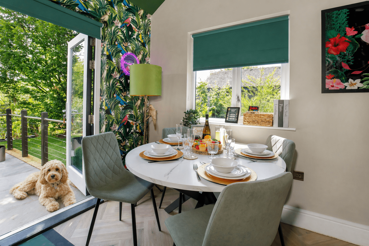 Following on from the kitchen dining table with seating for 4 guests. Offering the option to dine in, or dine out at one of the delicious local restaurants.