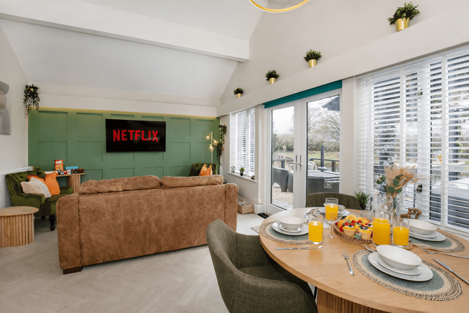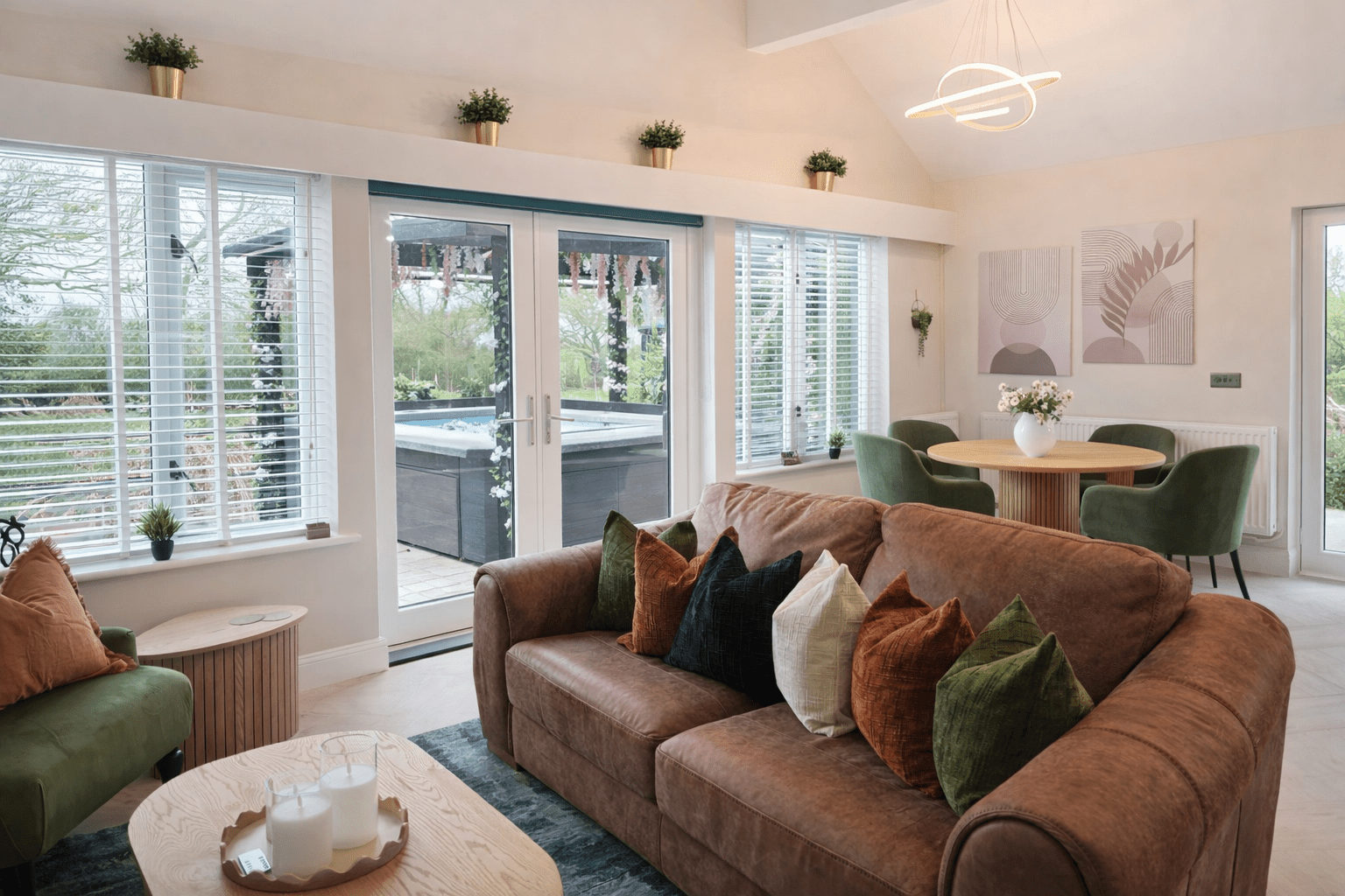 The lodge consists of a large open plan living, kitchen and dining space, a bathroom with ensuite shower and luxury tiling.