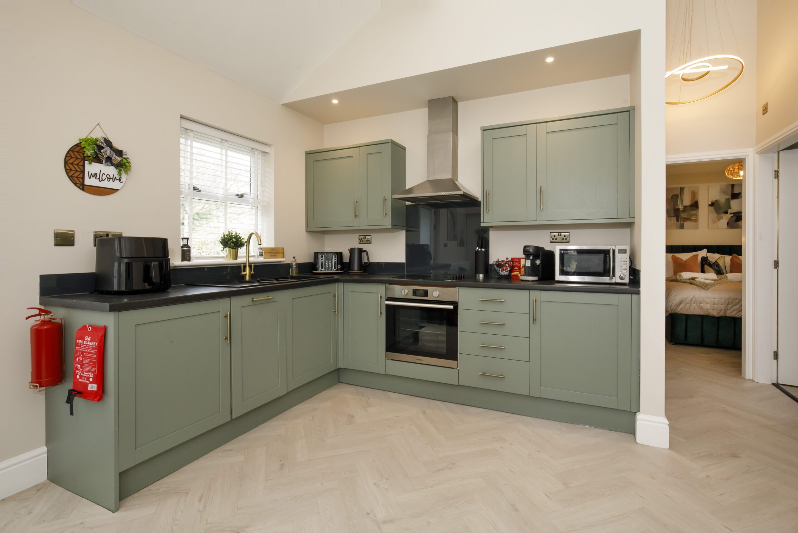 The kitchen area is well equipped for a guest to cook a basic meal, with all the electrical appliances you should need including a dishwasher, oven and hob, kettle and toaster, coffee machine and Airfryer. Following on from the kitchen dining table with seating for 4 guests. Offering the option to dine in, or dine out at one of the delicious local restaurants.