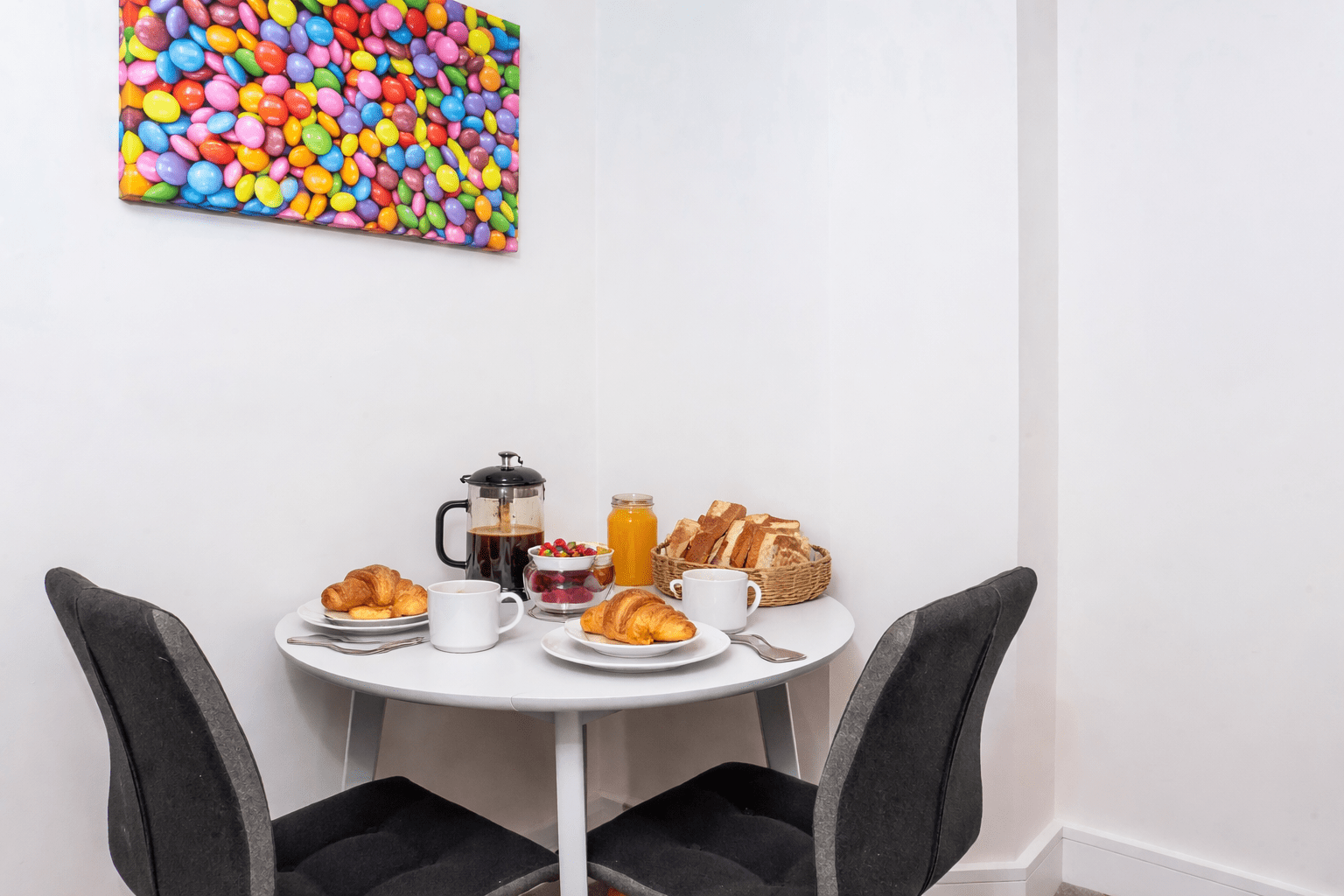Our Gorgeous Cocoa Suites apartments are our new stylish studio apartmens located in the perfect city centre location just a short stroll away from Yorks biggest attractions such as Bettys Tea Room The York Minster and much much more! The apartment is located in The Rowntree Wharf development which is steeped in history and is considered to be York’s finest industrial building. This astonoshing building was changed into flats and offices in 1989 and long before that was used as Rowntree and Cos Navigation Warehouse. Set in a quiet and tranquil riverside setting in the heart of the city of York this cosy apartment is the perfect choice for a weekend escape to York. Heading into the historic building you will be shocked to find extremely modern and stylish interior from the building entrance to the apartment door. Into the apartment you will see the studio is decorated to a extremely high standard with many original architectural features including exposed brickwork. The apartment comprises a Luxurious bathroom with a spacious walk in shower A sytlish kitchen area with the added benifit of undercounter lighting led spotlights and high spec fixtures and fittings. The Kitchen comes fully equipped with everything you could possibly need for your stay all utensils and appliances are there for your use including a brand new induction hob cooker microwave washer/dryer kettle and toaster. The apartment also offers a Generously sized Living/Sleeping area. The living space includes an extensive feature window that over looks the River Foss. It includes a Large Flat Screen TV with Smart features for your use. Free high speed WIFI is also available in the property. The Comfortable double bed provides the perfect base to collapse after a day out exploring what York has to offer. We provide hotel quality bed linen and towels for all guests during their stay. With the added benifit of a Hairdryer and Ironing facilites in the apartment it is perfect for guests who are looking to travel light. You will also find a cosy dining area to sit and enjoy a home cooked meal or a takeaway! This luxurious apartment is a hidden gem located within a historical building with high quality furnishings fixtures and fittings. It provides the perfect home from home comforts and a unique experience for your break away in York. PROPERTY AMENEITES Free high speed WIFI Towels and Bed linen of a hotel qualit Hairdryer Smart TV Crockery & cutlery Iron & ironing board Fridge with freezer compartment Microwave/ Oven Washer/Dryer Walk in shower spacious cubicle Modern and luxurious interior High spec Fixtures and fittings Central Heating Paid parking nearby Ground floor apartment
