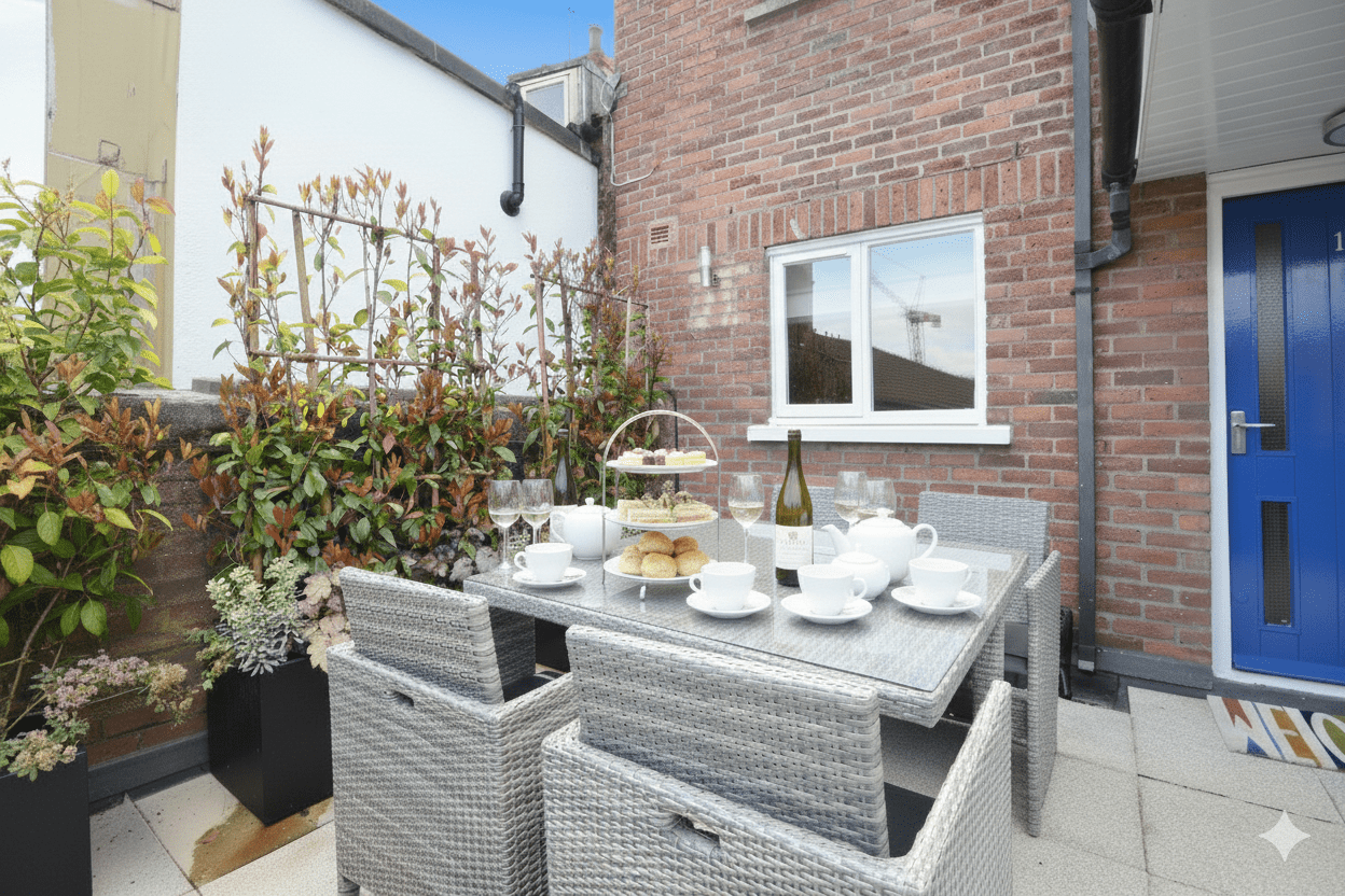 Step outside and enjoy the small outdoor seating area 🌿, perfect for a morning coffee or evening drink.