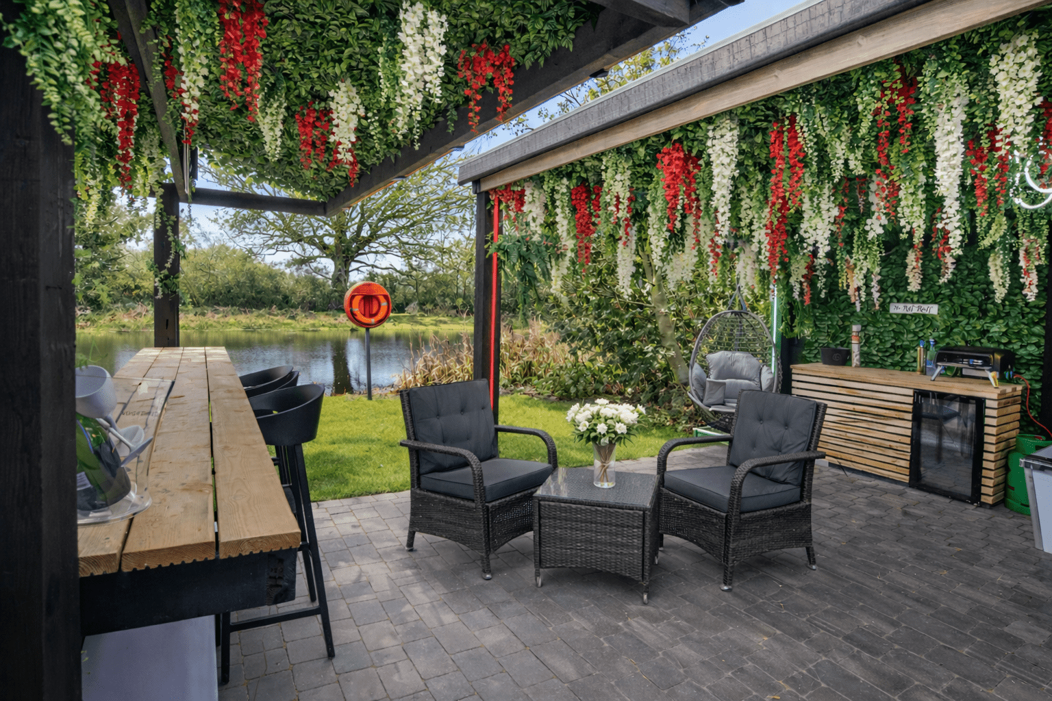 Step outside and you’ll find your own private outdoor haven. Unwind in the hot tub, gather around the fire pit under the stars, or enjoy al fresco dining with the bistro set and pizza oven. A feature swing adds a playful, relaxing touch—perfect for taking in the peaceful surroundings.