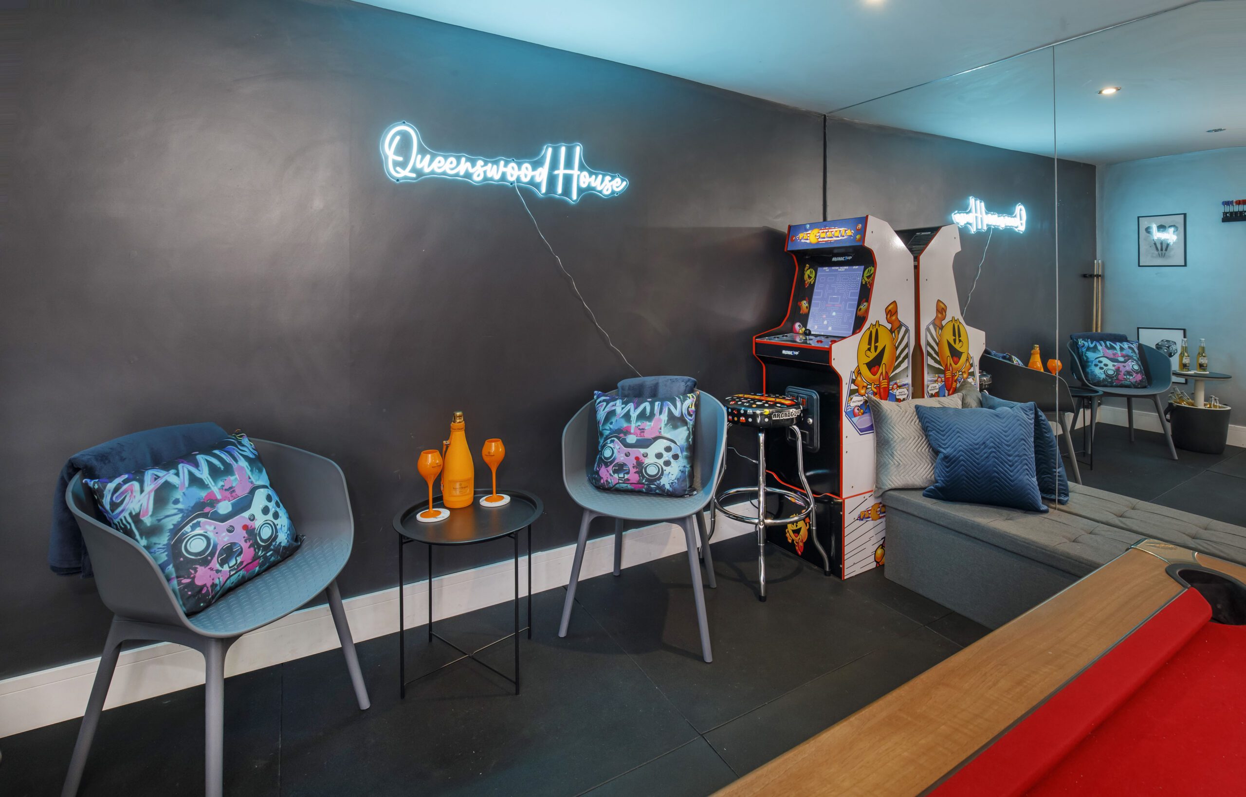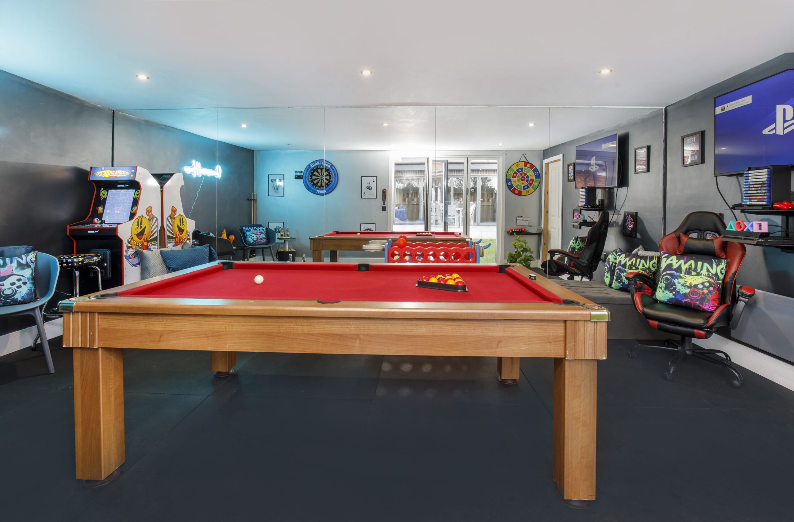 For fun-filled evenings at home, the purpose-built games room is a standout feature, complete with an arcade machine and pool table — guaranteed entertainment for guests of all ages.