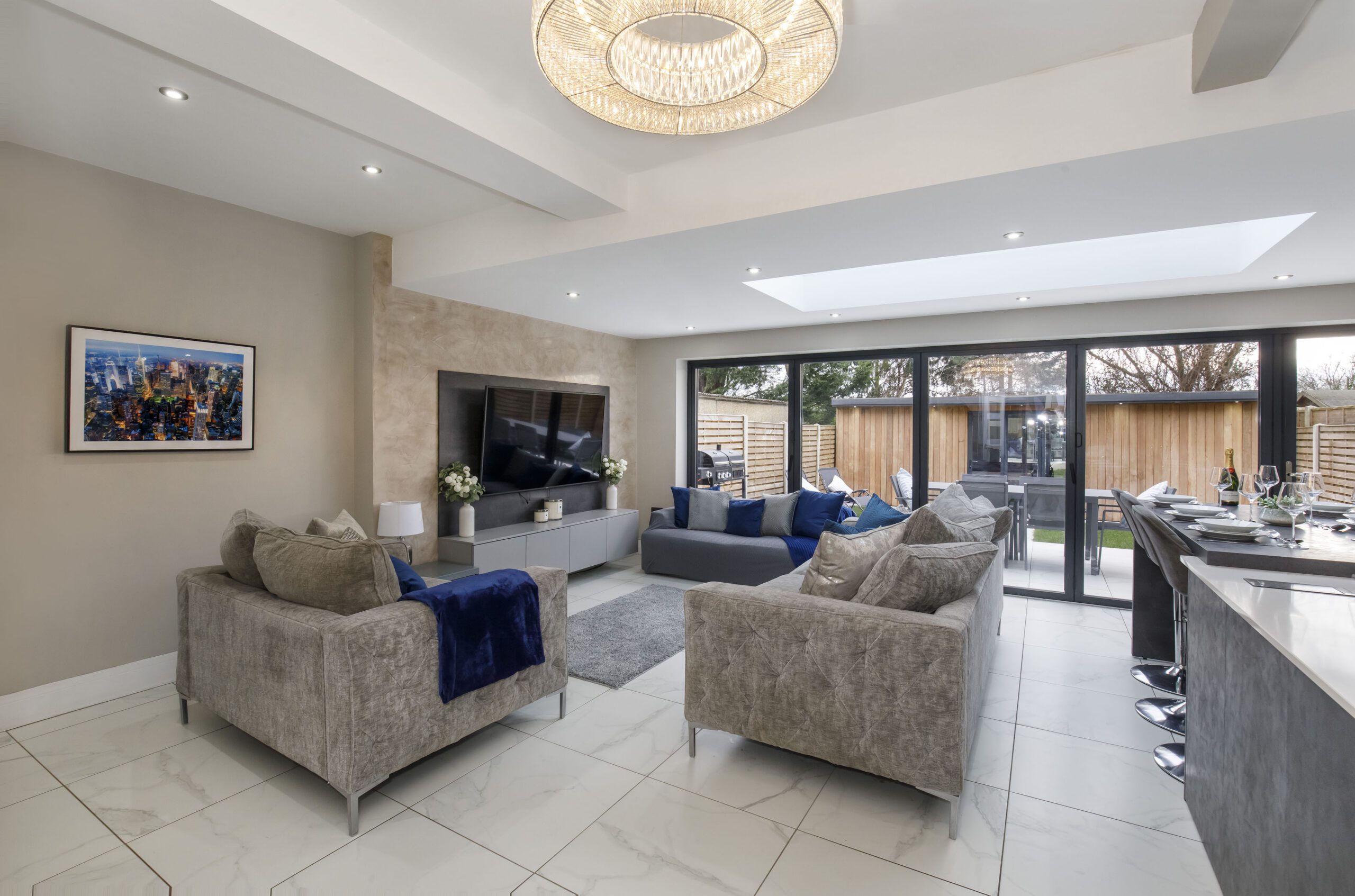 At the heart of the home is a stunning extended open-plan kitchen diner, flooded with natural light and beautifully finished with high-quality appliances throughout including large fridge/freezer, electric oven, induction hob, extractor fan, microwave, dishwasher, washing machine, wine fridge, coffee machine, toaster, and boiling tap. Whether you’re cooking up a feast or enjoying a relaxed breakfast, this space is ideal for socialising and unwinding together.