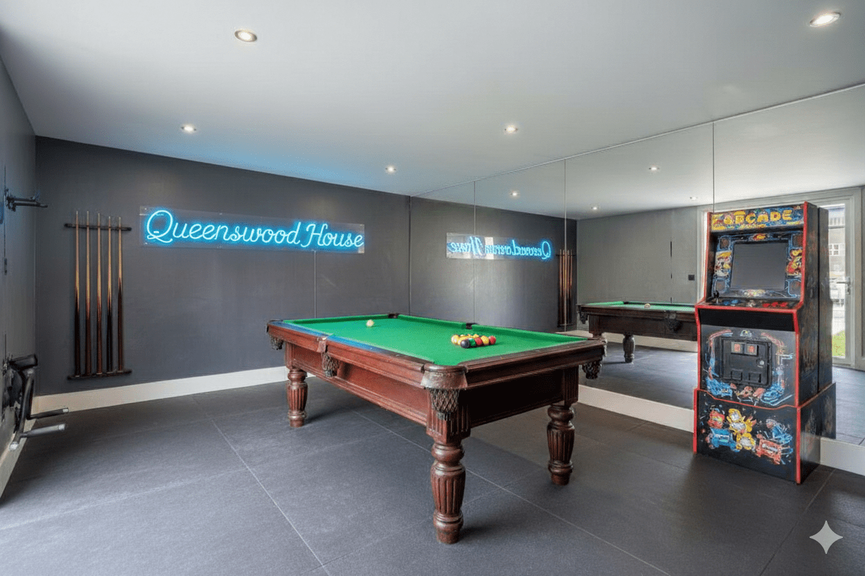 For fun-filled evenings at home, the purpose-built games room is a standout feature, complete with an arcade machine and pool table — guaranteed entertainment for guests of all ages.