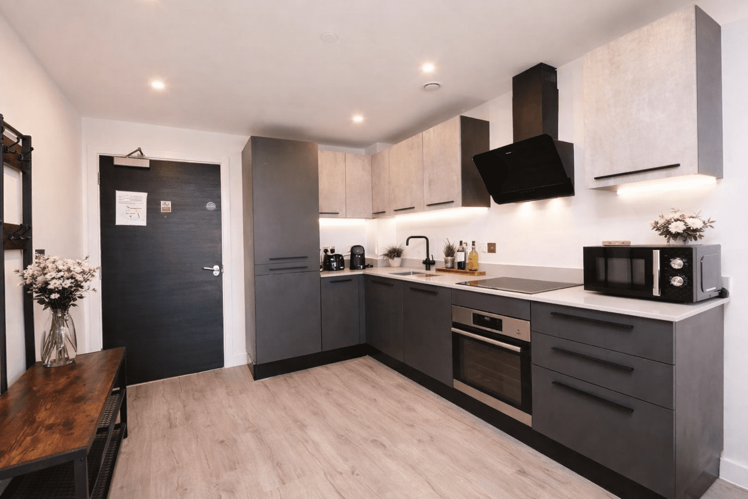 Step inside to discover a bright, thoughtfully designed space featuring a sleek open-plan layout. The modern kitchen is fully equipped with high-spec appliances and elegant finishes, flowing seamlessly into a comfortable living and dining area—ideal for relaxing or entertaining.