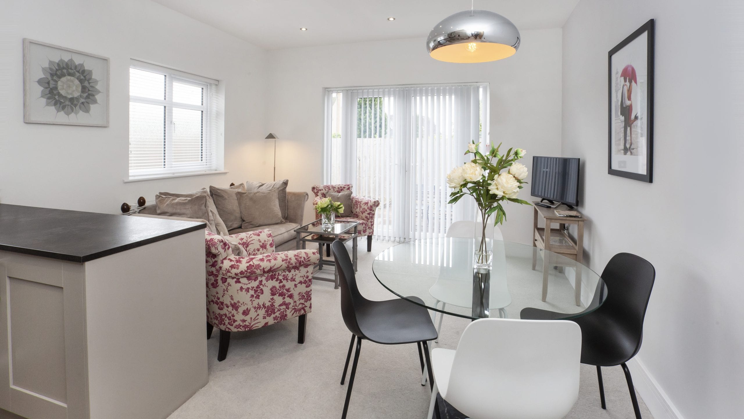 White House Apartments. 3 Luxury Apartments are in this development which is a perfect location for shopping at Monks cross and the Vangarde shopping centre and just a short bus ride into York City centre with the bus stop just outside the property on your door step. The White House Apartments consist of one 3 bedroom Duplex apartment and two 2 bedroom apartments with parking outside in allocated spaces. Two of the 2 bed apartments have their own garden area with a patio and BBQ facilities with a outside dining area. They will accommodate up to 14 guests. We can cater for hen parties or larger groups. They are all brand new and have luxurious fixtures and fittings. White house apartment C is a 2 bedroom ground floor apartment. It has a dining and lounge area with a dining table to seat 4. This property has 2 bedrooms which are made up as the following Bedroom one is a king size bed . The second bedroom can be split in two singles or a king size bed . Modern luxury family bathroom with a bath and shower. This property has a state of the art kitchen with washing machine and dishwasher and everything you would need to dine in . The property has Alexa and Netflix available for you to use during your stay . Parking for up to two small cars -sharing one space .